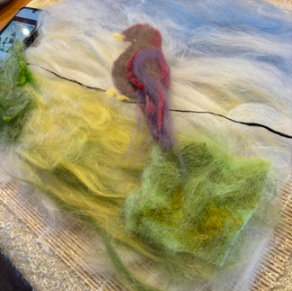 As the session progressed, textures began to appear and colours softened into one another. Some chose abstract designs, while others worked with a clearer picture in mind, but every piece developed its own depth and character. Wet felting rewards patience, and it was a pleasure to see the steady transformation unfold across the table.