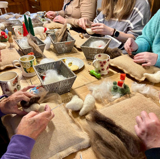 The robin felt right at home as our theme for the day. Working with natural wool fibres in soft reds, browns, and creams, everyone built their robin gradually before bringing the wreath to life with simple autumn touches. It was lovely to watch each person’s piece take shape in its own way, and to see confidence grow as the layers came together.